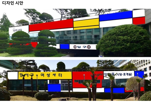 강서구는 도색한 지 10년이 지나 칙칙한 구청사 외벽을 화가 몬드리안 색채인 빨강, 노랑, 파랑의 삼원색과 친환경 나노세라믹 페인트로 채색해 미관 문제와 시설유지관리를 개선하기로 했다.
