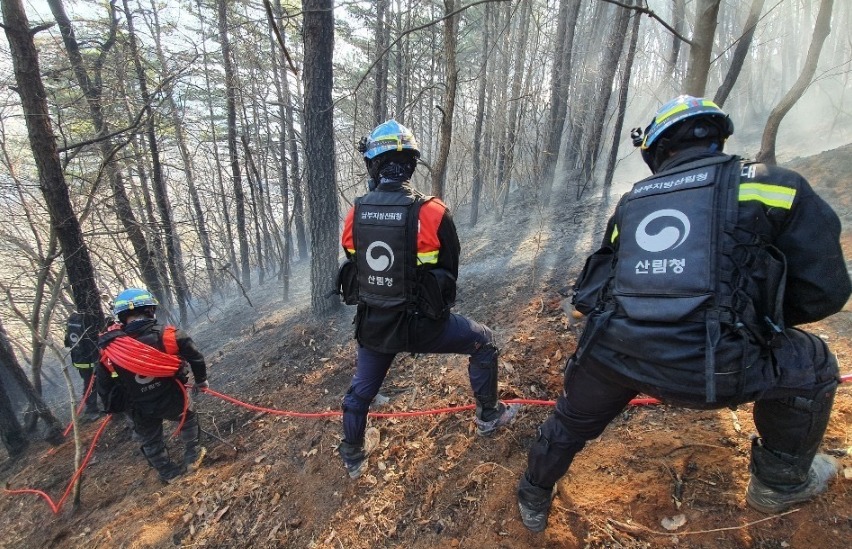 남부지방산림청은 재불이 발생하지 않도록 잔불 정리에 전념하고 있다.