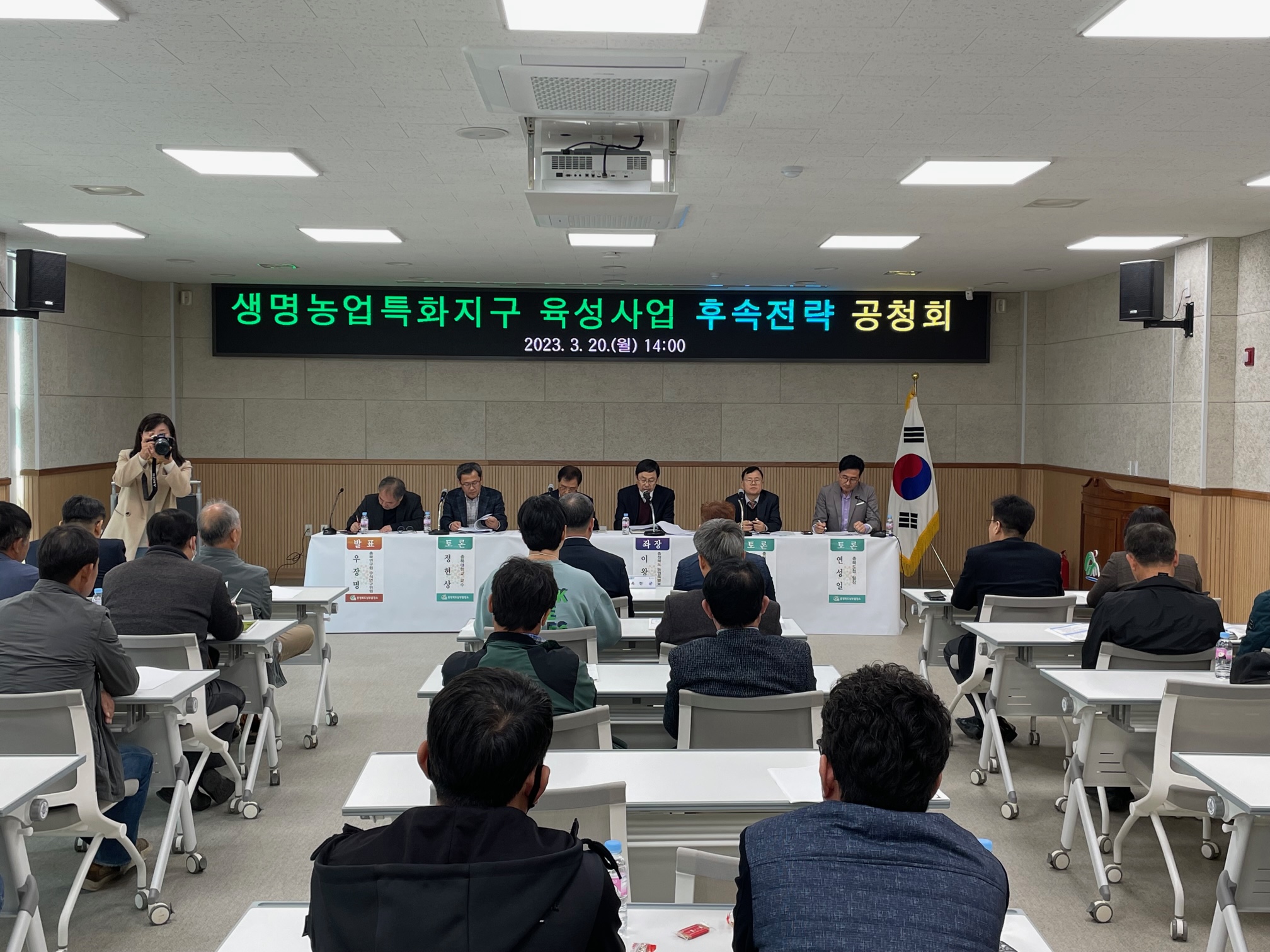충청북도남부출장소는 3월 20일 남부출장소 대회의실에서 전문가 의견 수렴을 위한「생명농업특화지구 육성사업 후속전략 공청회」를 개최했다.
