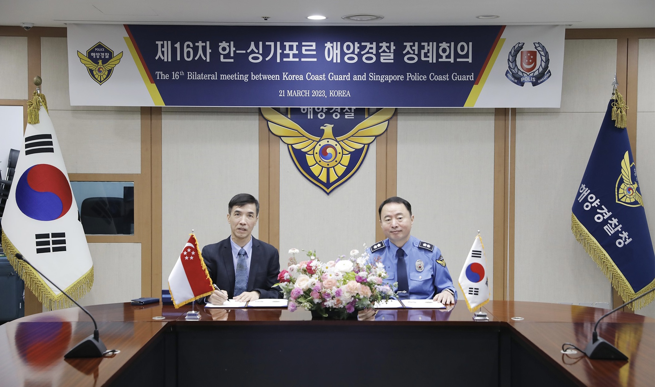 한-싱가포르 정례회의는 지난 2004년 기관 양해 각서(MOU) 체결 이후 16회째로 2019년 이후 4년 만에 싱가포르 해경 사령관 정깅굥(Cheang Keng Keong) 치안감이 다시 해양경찰청을 방문했다.