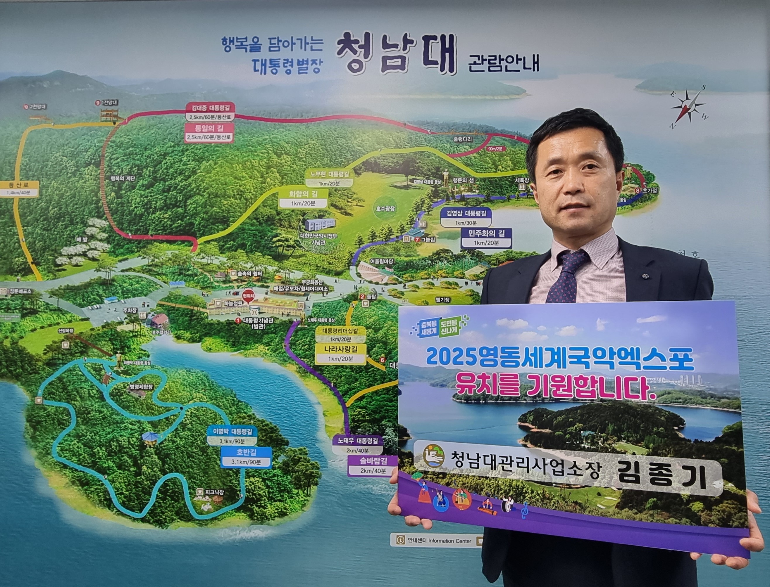 김종기 청남대관리사업소장이 21일 ‘2025 영동 세계국악엑스포’ 유치 챌린지에 동참했다.