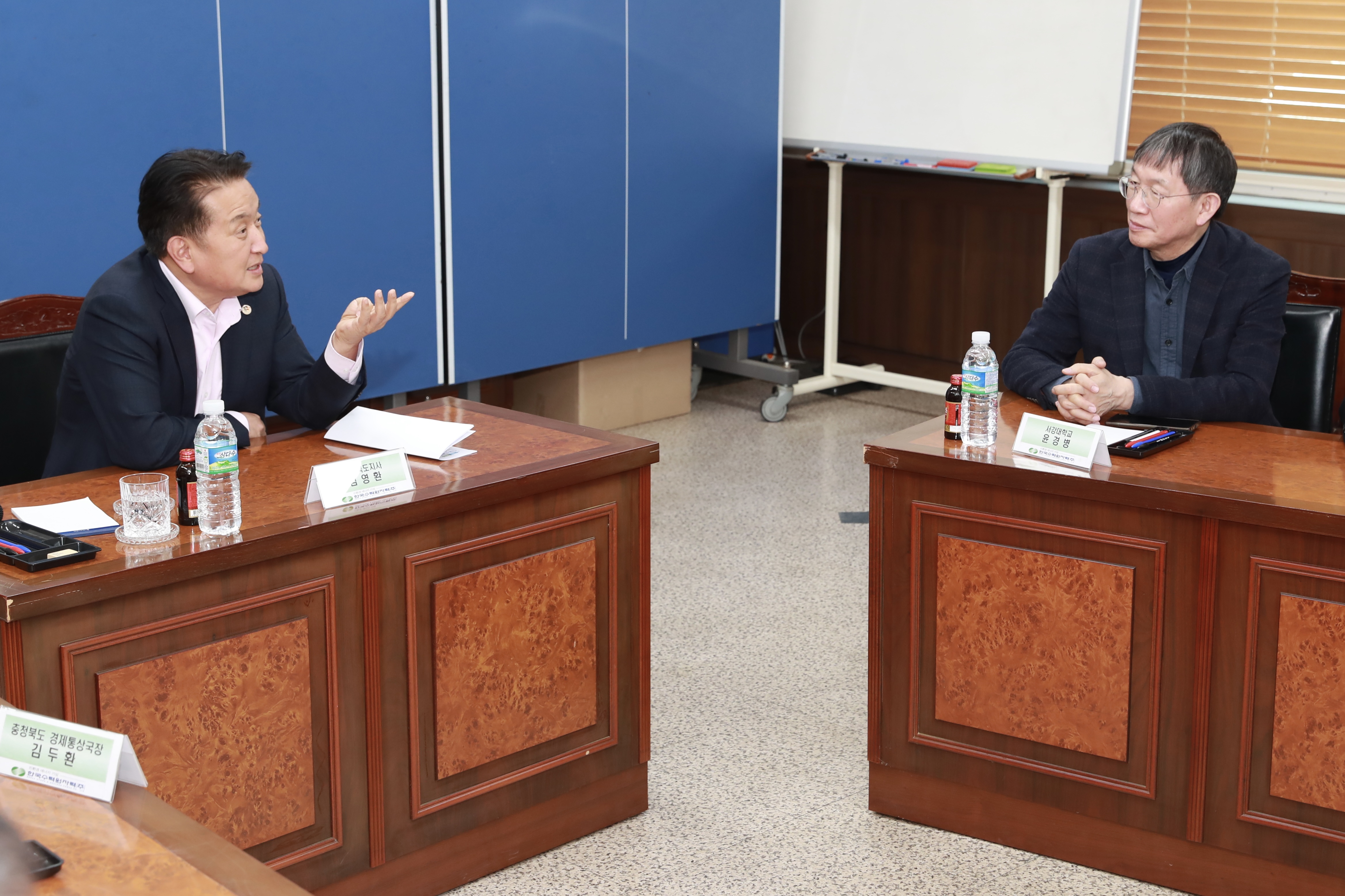 이날 김지사는 김영복 괴산 수력발전소장(한국수력원자력㈜)과 윤경병 서강대학교 자연과학대학 교수(수전해를 통한 그린수소 생산 전문가)등 관계자들과 괴산댐 전력과 용수 활용방안을 논의했다.