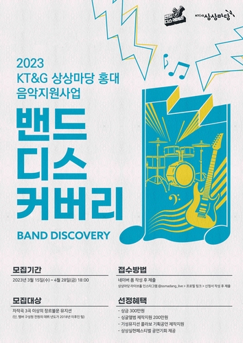 KT&G(사장 백복인)가 신인 인디 뮤지션을 발굴해 지원하는 '2023 밴드 디스커버리' 참가 대상자를 오는 4월 28일까지 공개 모집한다.