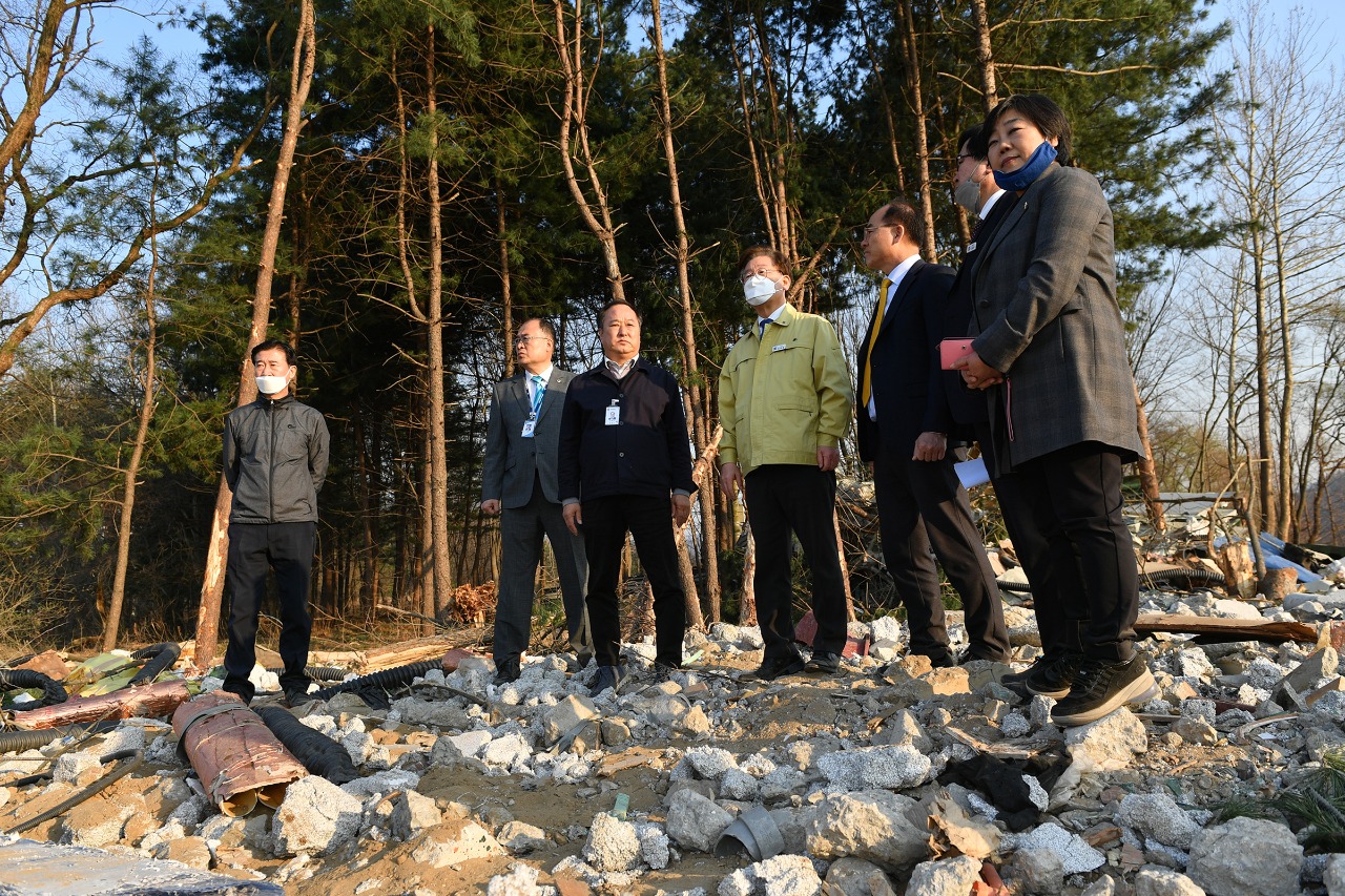 현장점검을 마친 이재명 지사는 “불법시설물이 이렇게 대규모로 방치돼 있었다니 놀랍고 안타깝다”며 “이곳의 아름다운 자연환경을 살려 많은 사람들이 찾을 수 있도록 양평군에서 생태공원으로 조성하는 것이 바람직하다”고 말했다.