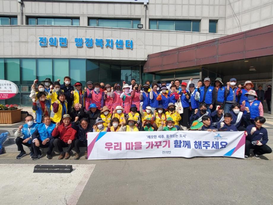 이날 봄맞이 환경정화활동은 전의면 복합커뮤니센터 개관식과 묘목축제를 찾을 방문객들에게 쾌적한 마을 환경을 제공하고자 마련됐다.