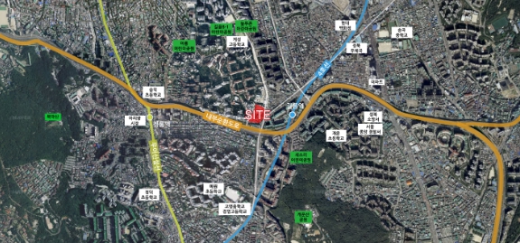 천호대로변에 위치한 사업부지는 지하철 5호선 '강동역'과 인접하고 '천호역'과도 가까워 대중교통 이용이 편리하며, 북측 고층으로는 한강을 조망할 수 있고 남측으로는 올림픽공원의 탁 트인 조망이 확보되어있는 장점을 갖추고 있다.