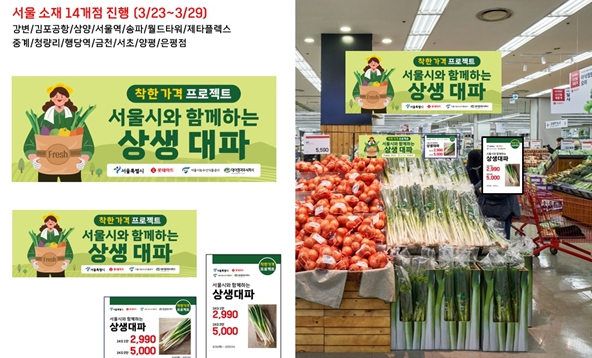 서울시는 밥상물가 상승으로 어려움을 겪는 시민들의 부담을 덜기 위해 ▴롯데마트 ▴대아청과(주) ▴서울시농수산식품공사와 협력해 유통․판매마진을 최소화한 대파 20톤을 공급하기로 했다고 밝혔다.