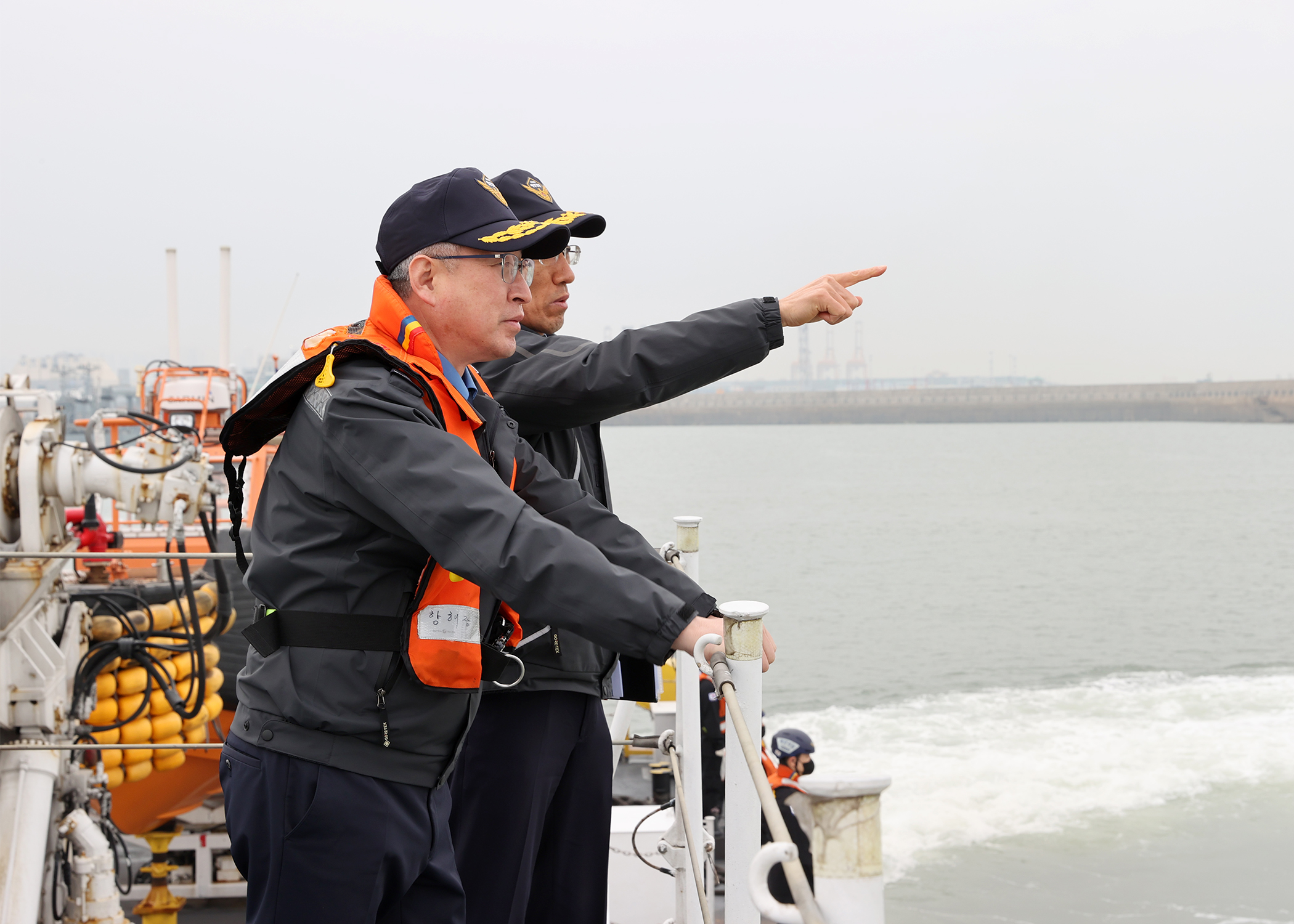 김 청장은, 오전 서해 접경해역에 위치한 연평어장의 꽃게성어기(4.1일~ 6.30일까지)를 앞두고, 어업인들 안전을 사전에 점검하기 위해 경비함(526함)을 이용하여 연평어장을 순찰한 후