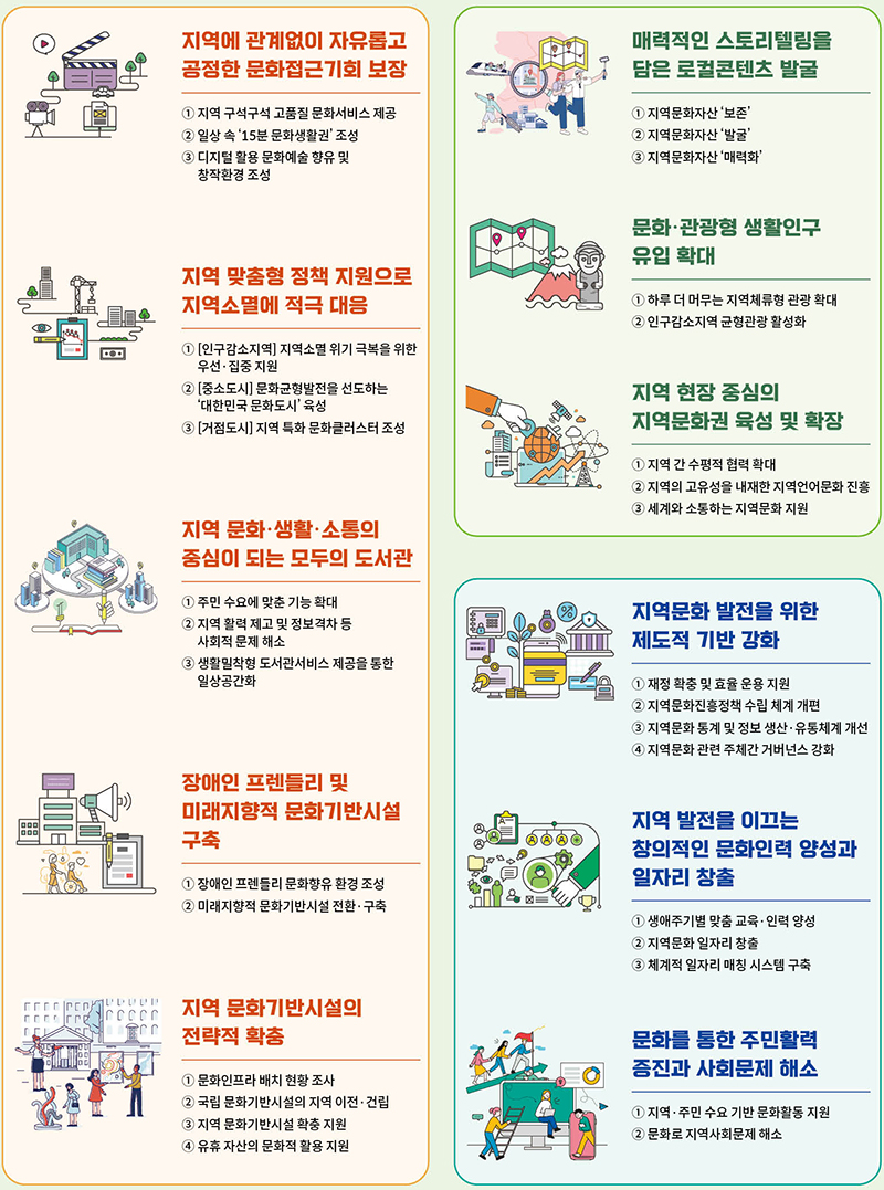 문화체육관광부는 23일 윤석열 정부의 국정목표 ‘대한민국 어디서나 살기 좋은 지방시대’를 이행하기 위해 이와 같은 문화 분야 비전을 담은 ‘지방시대 지역문화정책 추진전략’을 발표했다.