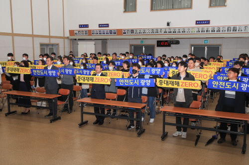 또한 중대재해 제로 결의 퍼포먼스로 전 직원의 중대재해 없는 안전도시 광양 실현에 대한 의지를 다졌고, 중대재해 예방교육을 1, 2부로 나눠 4시간에 걸쳐 진행했다.