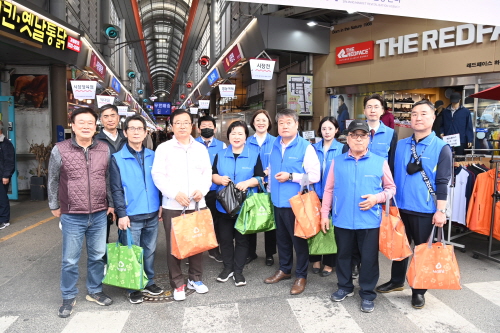 이현재 하남시장이 지난 22일 '3월 전통시장 가는 날'을 맞아 신장·덕풍전통시장, 석바대상점가에서 이점복 하남MG새마을금고 이사장 등 10여 명이 참석한 가운데 전통시장 장보기 행사를 가졌다.