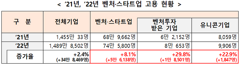 중소벤처기업부는 23일 이 같은 내용의 ‘2022년 벤처·스타트업 고용 동향’을 발표했다.