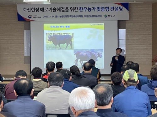 전남 보성군은 24일 농업기술센터 대강당에서 농촌진흥청 국립축산과학원과 협력해 지역 한우농가 49명을 대상으로 전문가 맞춤형 종합컨설팅을 실시했다고 밝혔다.