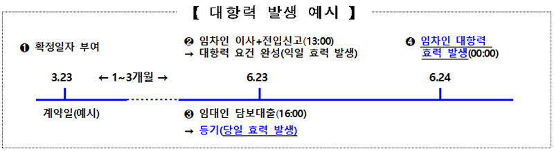 이는 지난달 발표한 ‘전세사기 예방 및 피해 지원방안’의 후속조치로 임차인의 대항력 효력이 발생하는 전입신고 다음날 0시 전에 임대인이 선순위 주택담보대출을 받는 경우 임차인의 보증금 보호가 취약해지는 사례를 방지하기 위한 것이다.