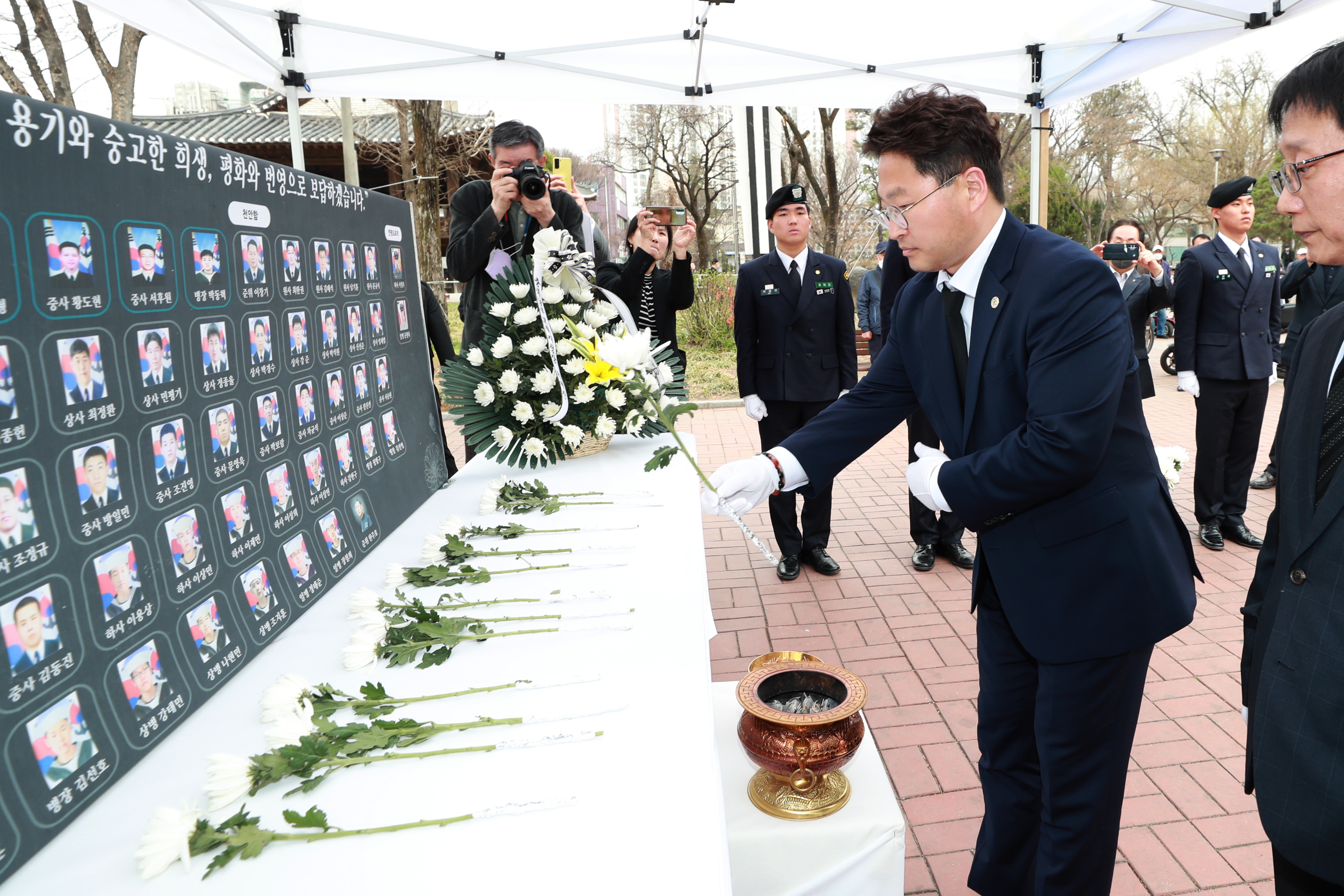 이우종 행정부지사는 추모사를 통해 “북한의 무력침략에 맞서 서해를 수호하다 돌아가신 호국 용사들의 영원한 안식을 바란다”면서 “서해 영웅들의 희생에 보답하기 위해 강한 안보정신으로 자유와 평화를 지켜 나가자”고 말했다.