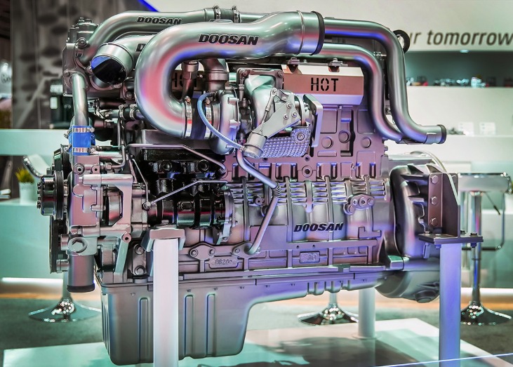 이번에 첫 선을 보인 엔진은 두산인프라코어가 타타대우상용차에 공급하기 위해 개발한 DX12 전자식 엔진이다. 11.1리터의 배기량으로 최고 460마력의 출력을 낸다. 전자식 모델로 개발돼 배기가스 재순환 장치(EGR) 없이도 세계에서 가장 강력한 유럽의 차량용 배기규제(유로6)를 충족하는 고성능·친환경 제품이다.