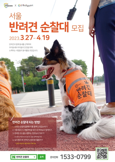 서울특별시 자치경찰위원회는 ‘서울 반려견 순찰대’를 서울의 자치구 25곳으로 확대하고, 3.27일부터 4.19일까지 누리집을 통해 참여자를 모집한다고 밝혔다. 이번 모집은 자치구별로 약 50팀을 선발할 계획이다.