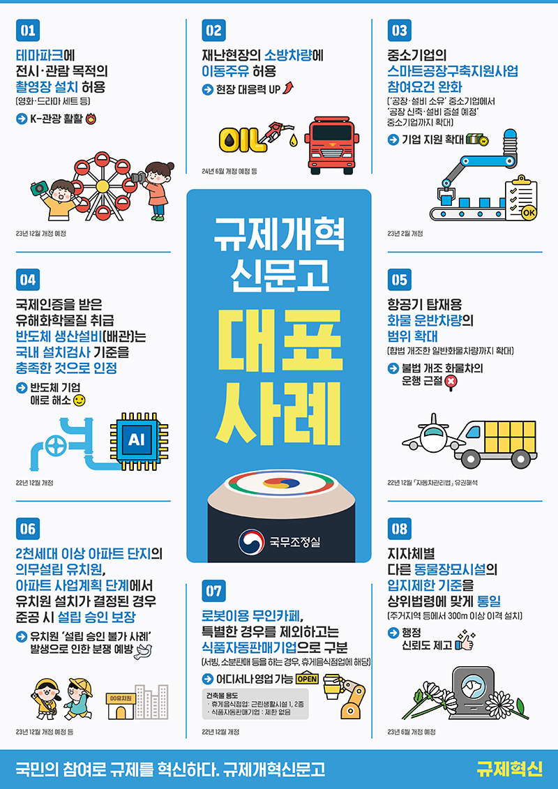국무조정실은 이 같은 내용을 포함, ‘규제개혁신문고( www.sinmungo.go.kr )’를 통해 개선된 8개 사례를 27일 발표했다.