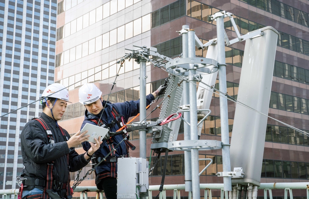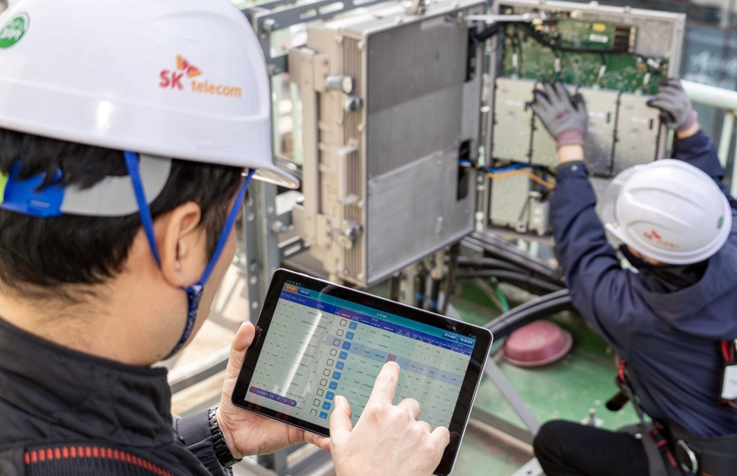 SK텔레콤은 무선 네트워크 품질 관리 AI 솔루션, A-STAR를 개발, 자사의 전국 기지국에 적용했다고 28일 밝혔다. 사진은 SK텔레콤과 SK오앤에스 직원이 A-STAR를 통해 네트워크 품질을 점검하는 모습.