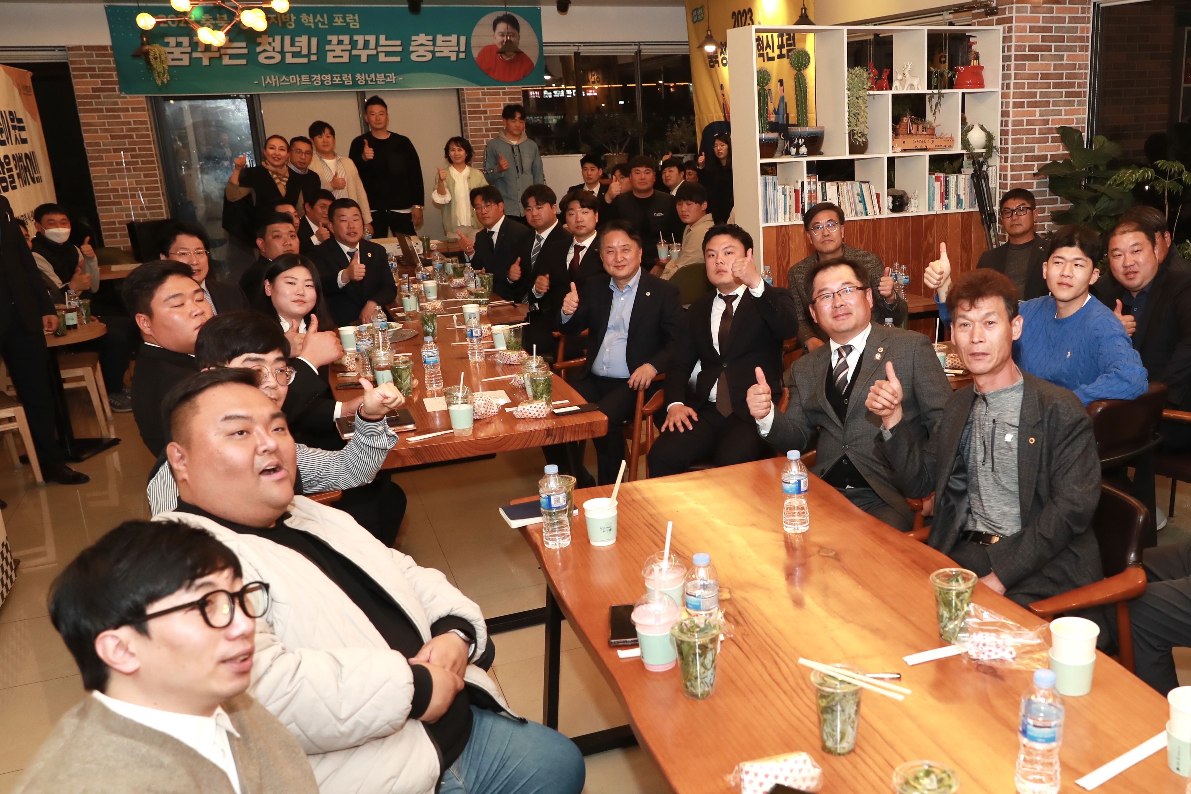 김영환 충북도지사가 지난 27일 저녁, 보은의 한 카페에서 지역청년 60여명과 소통간담회를 가졌다.