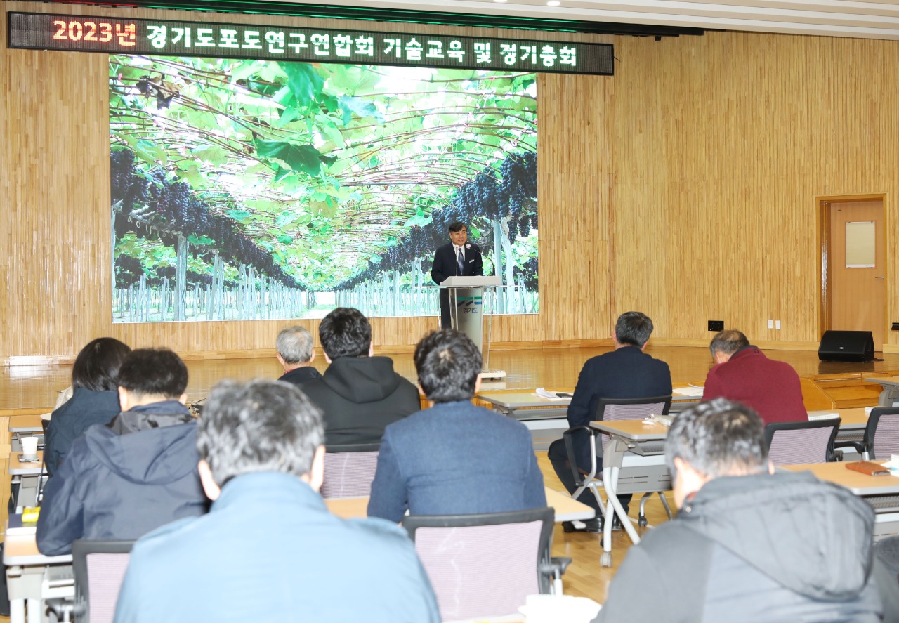 경기도농업기술원은 포도 재배 농가 60여 명이 참석한 가운데 2023년도 경기도포도연구연합회 기술교육 및 정기총회를 28일 개최했다.