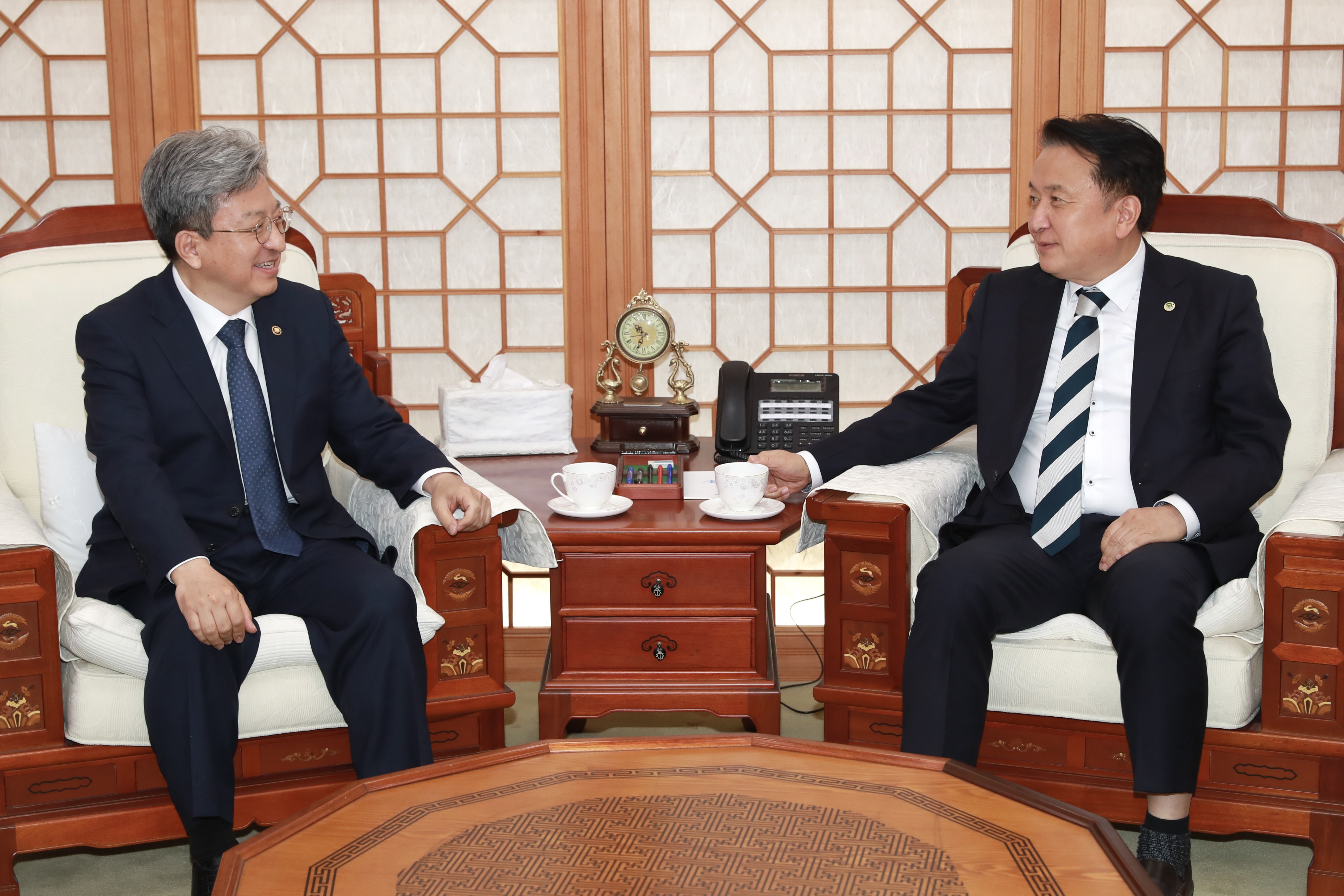 김영환 충북도지사는 28일 충북도청을 방문한 국토교통부 이원재 제1차관을 만나 우리 도 국토부 최대 현안 사업을 건의했다.