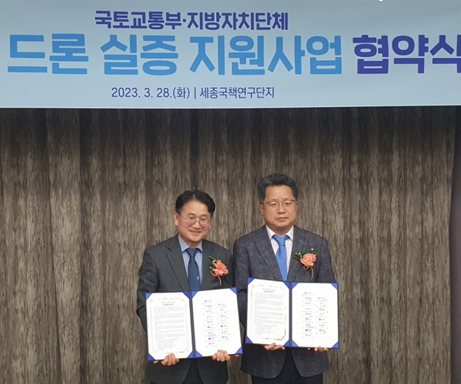 성남시는 3 월 28 일 오전 10 시 , 세종특별자치시 국책연구단지 대회의실에서 국 토교 통부가 주최하고 항공안전기술원이 주관하는 ‘2023 년 드론 실증도시 구축사업 ’ 에 대한 업무 협약을 체결했다 .