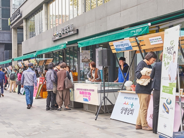 상생상회(안국역 1번 출구)는 서울시가 지역 중·소농을 돕고 판로를 지원하기 위한 거점 도농 교류 공간으로 생산자에게는 낮은 수수료를 적용하고, 소비자에게는 안전한 먹거리를 제공하며 서울과 지역의 상생을 이끌고 있다.