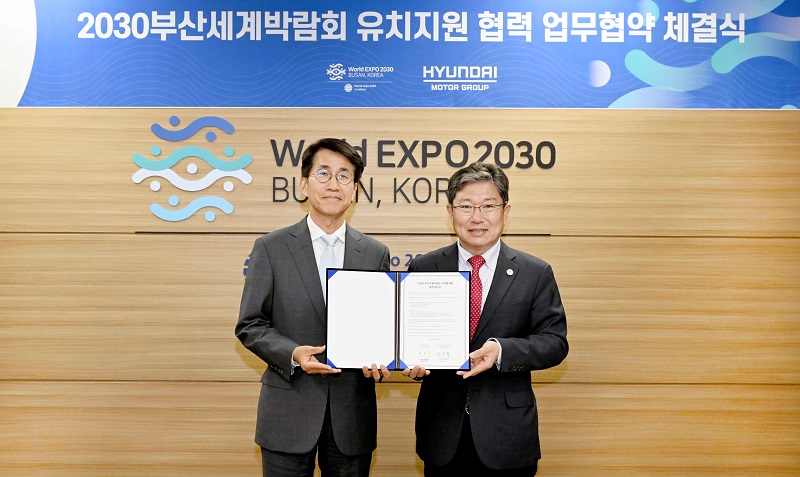 2030 부산세계박람회 유치위원회는 현대자동차그룹과 2030부산세계박람회 유치를 위한 협력 양해각서(MOU)를 체결했다고 28일 밝혔다.