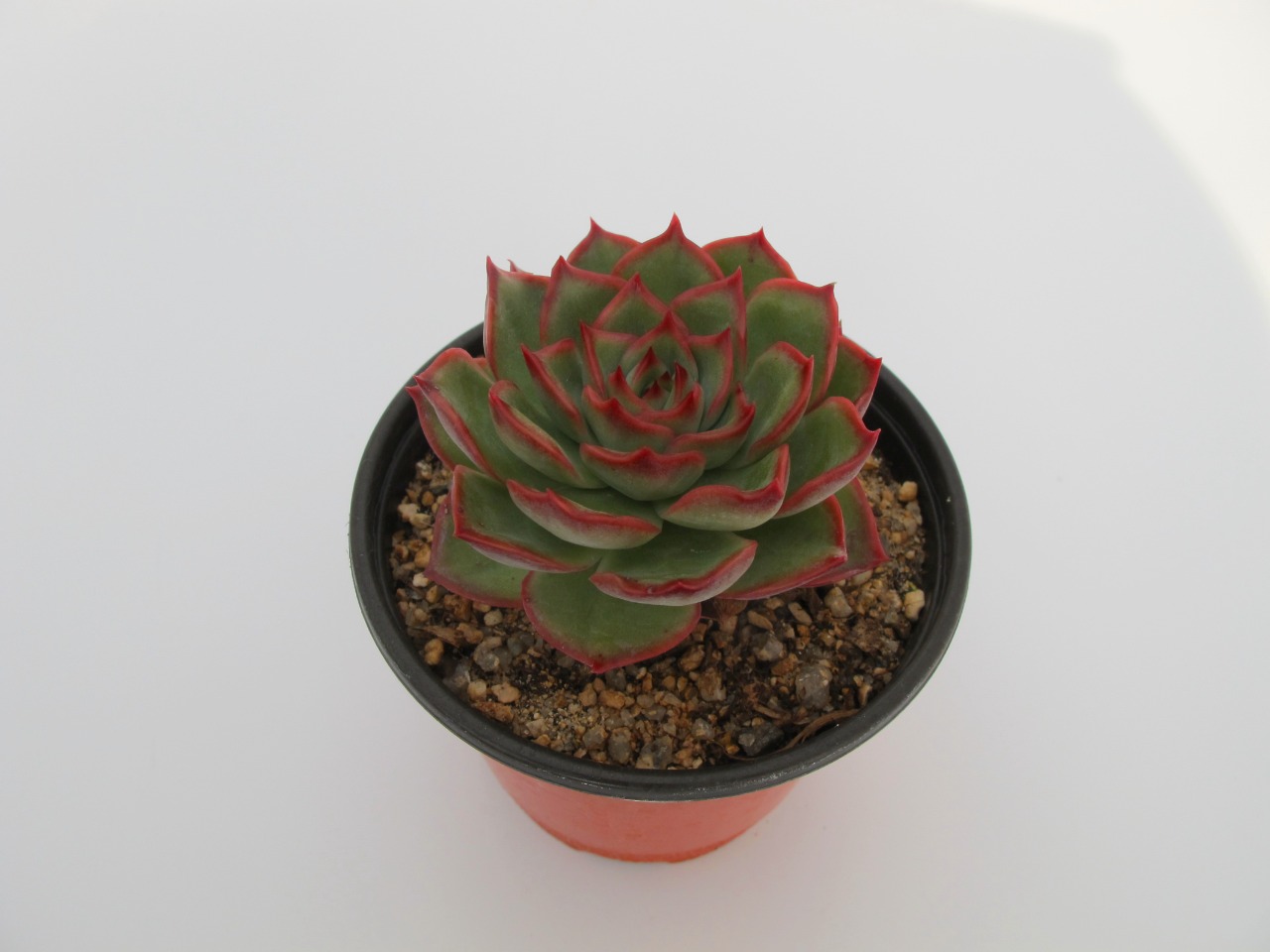 ‘네온크라운’은 잎 가장자리에 회적색이 진하게 착색되며 잎에는 백분이 거의 발생하지 않아 선명하고 깨끗한 이미지가 특징이다. 장미 같은 외형에 여름철에도 색상 유지력이 우수하여 상품성이 뛰어나다.