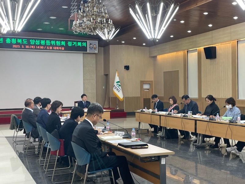 충북도는 3월 30일 도청 대회의실에서 2023년 충청북도 양성평등위원회를 개최하여 충청북도 양성평등기본계획 2023년 시행계획(안) 2022년 양성평등기금 결산을 심의·의결하고 2023년 양성평등기금 지원사업 대상을 최종 선정했다.