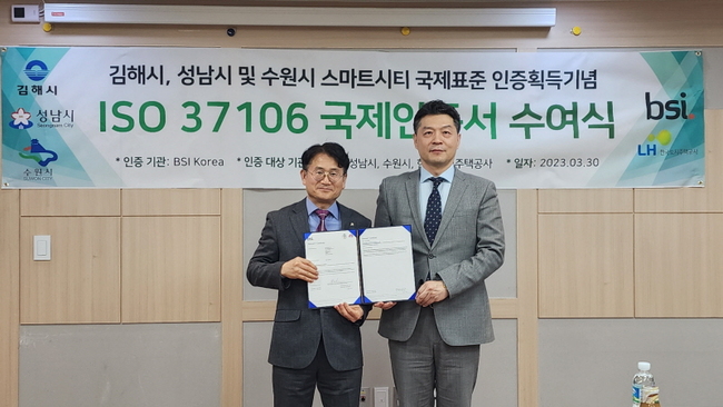 성남시는 3 월 30 일 영국표준협회 (BSI) 가 발급하는 스마트도시 국제인증서를 받았다 .