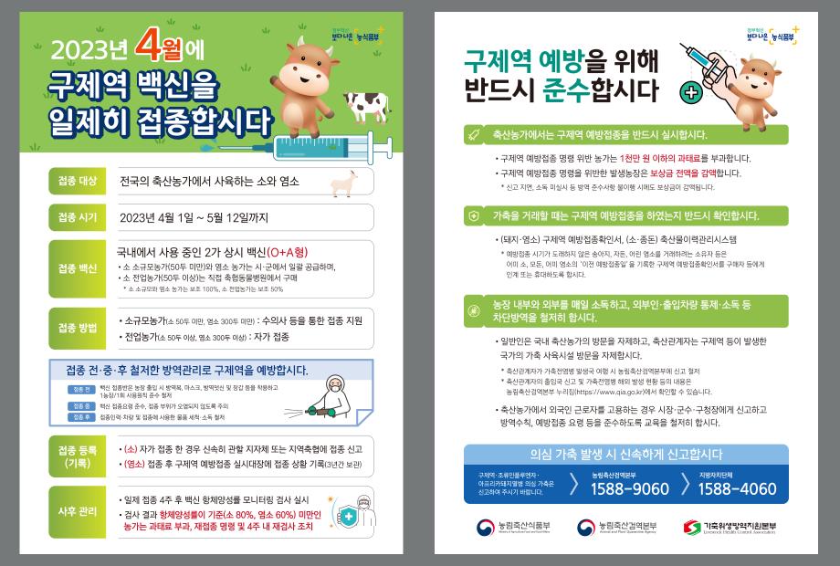 세종특별자치시가 4월 1일부터 5월 12일까지 소, 염소를 대상으로 ‘2023년 상반기 구제역 일제 예방접종’을 실시한다.