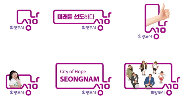 시는 시민의 열정을 상징하는 빨간색과 성남시의 첨단산업을 상징하는 파란색을 융합해 보라색 (Purple Blue) 계열의 중의적 색상으로 도시 브랜드 디자인을 입혔다 .