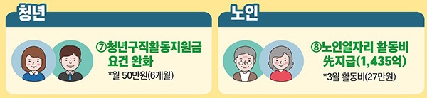 이밖에 코로나19로 중단된 노인 일자리 사업 참여자 가운데 희망자에 한해 4월 초에 1개월분 활동비 전액을 선지급할 예정이다.