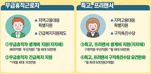 특히 무급휴직자는 지역고용대응 특별지원사업의 지원을 받고도 어려움이 계속될 경우 긴급복지지원제도의 지원을 받을 수 있다.