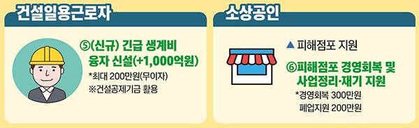 사업정리 지원은 특별재난지역 8200개소를 중심으로 신용등급과 관계없이 폐업 예정 사업장의 사업정리 컨설팅 및 점포철거비 등에 최대 200만원을 지원한다.