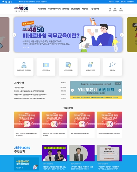 이번 개편으로 ① 서울런4050 사업 소개 ② 온·오프라인 연계 ‘미네르바형 직무교육’ 제공 ③ 경력 전환 전문 상담 및 컨설팅 페이지를 신설했다.