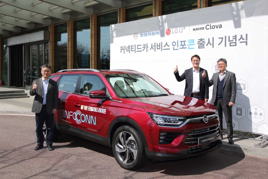 LG유플러스(www.uplus.co.kr), 쌍용자동차(대표 예병태, www.smotor.com), 네이버(대표 한성숙, www.navercorp.com)는 오는 4월 공동개발 해 온 쌍용차의 커넥티드카 시스템의 본격적인 서비스 론칭에 앞서 함께 브랜드 출범식을 진행했다고 31일 밝혔다. 브랜드명은 인포콘(Infoconn)이다.