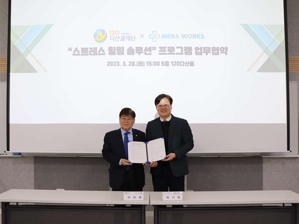 서울특별시 120다산콜재단과 ㈜메가웍스가 감정노동 종사자 정신건강 관리 및 증진을 위해 3월 28일 업무협약을 체결했다.