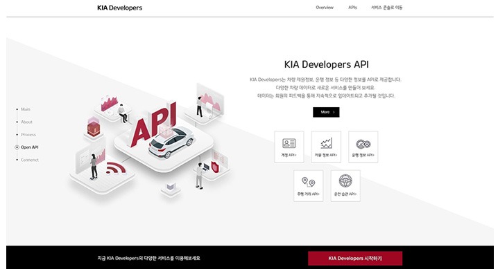 커넥티드카 상품 및 서비스를 개발하고자 하는 사업자는 기아 디벨로퍼스 홈페이지에 가입을 하고 데이터의 사용처와 목적을 등록하면 승인을 거쳐 API를 사용할 수 있다.