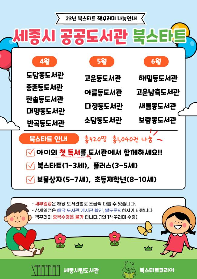 세종특별자치시 공공도서관이 올해 ‘북스타트 프로그램’을 이달부터 6월까지 운영한다.