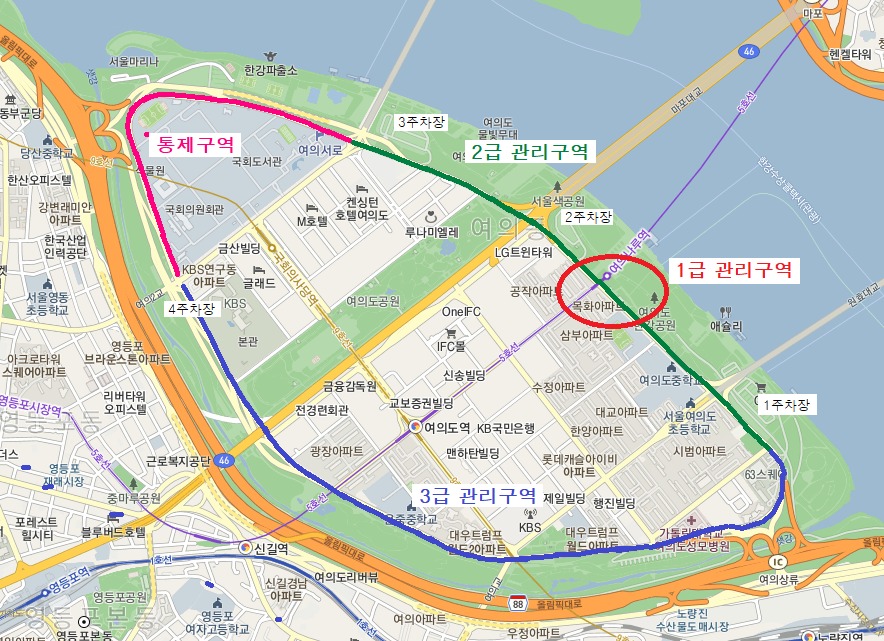 둘째, 영등포구청과 협조하여 차량 및 시민통제구역인 여의서로 주변과 한강공원 진·출입로 15개소를 폐쇄하고 홍보물 부착 및 관련 시설물을 설치하여 한강공원 시민이용을 최소화할 예정이다.