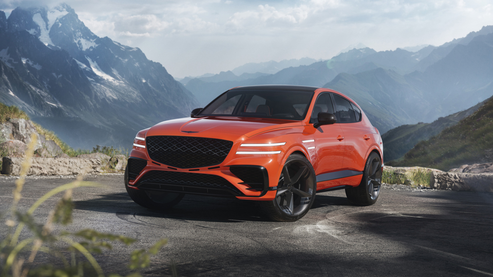 GV80 쿠페 콘셉트의 대담한 디자인은 외관에 적용된 마그마(Magma) 색상으로 한층 더 강조된다.