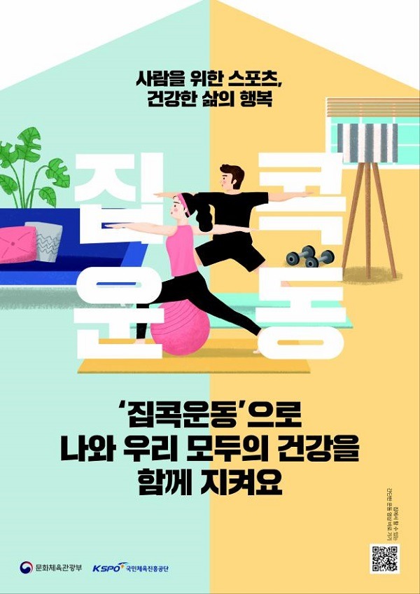 문체부는 대한체육회, 국민체육진흥공단 등 체육단체와 함께 “‘집콕운동’으로 나와 우리 모두의 건강을 함께 지켜요”라는 표어 아래 캠페인을 펼친다고 1일 밝혔다.