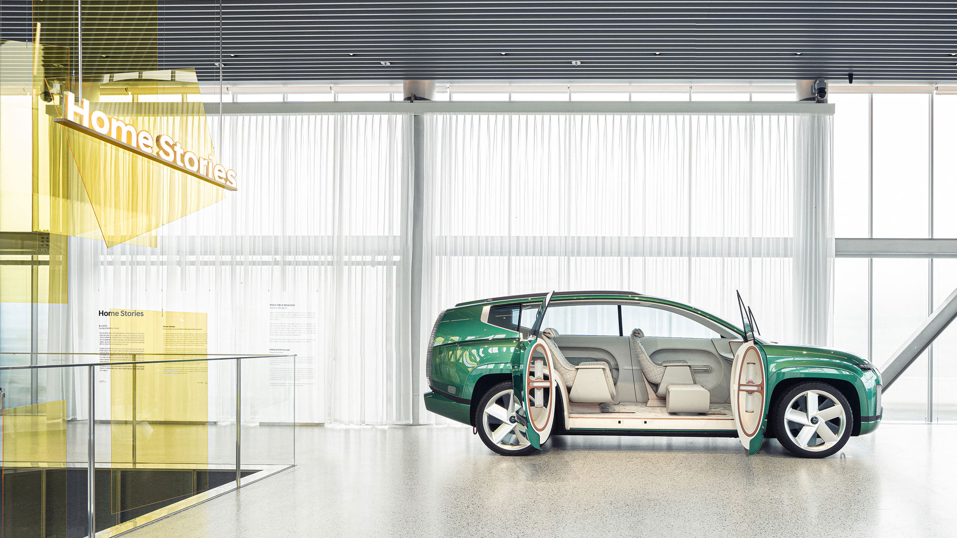 〈홈 스토리즈〉 전시는 인류와 함께 진화한 주거 문화 변화와 미래 일상의 공간이 될 모빌리티 스토리를 전하고자 기획됐으며, 〈아이오닉 콘셉트카 ‘세븐(SEVEN)’〉을 시작으로 비트라 디자인 뮤지엄의 〈홈 스토리즈, 20개의 혁신적인 인테리어로 보는 100년의 역사〉, ‘스튜디오 스와인(Studio Swine) ’의 신작 〈흐르는 들판 아래〉까지 총 3개의 섹션으로 구성됐다.