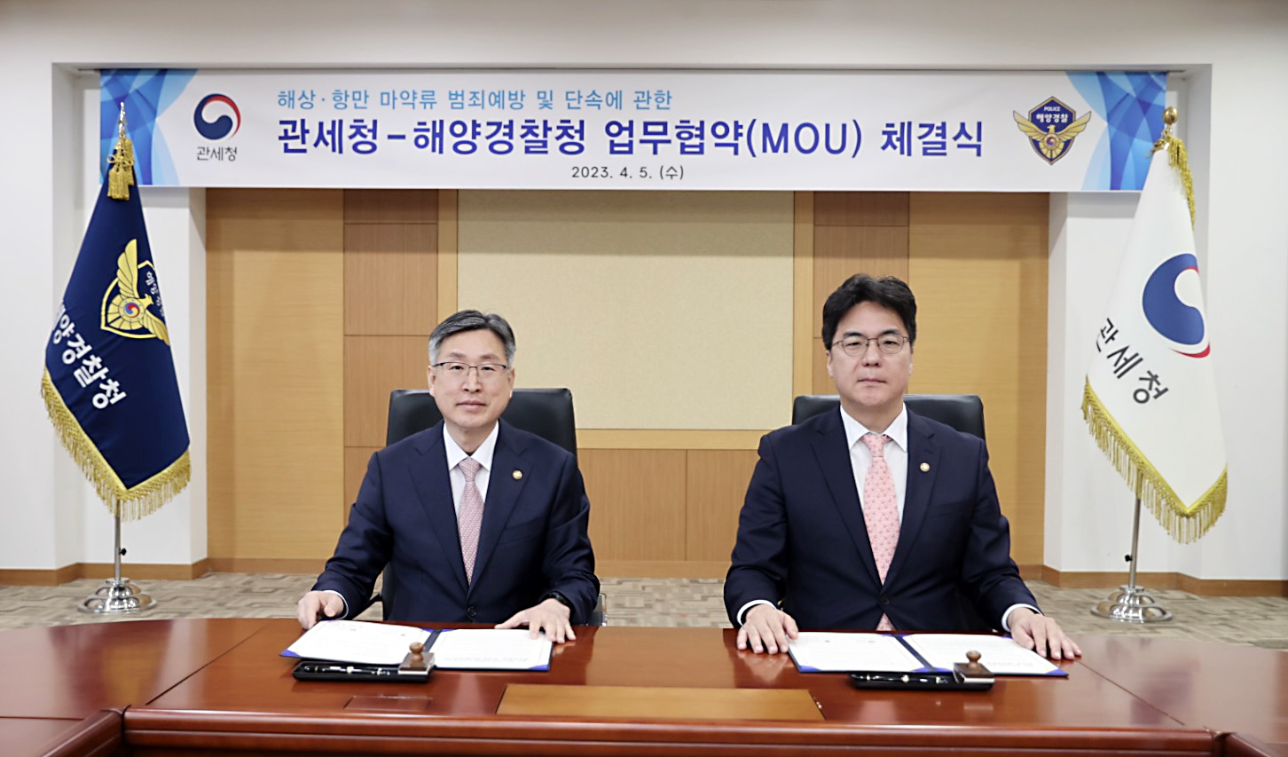 해양경찰청과 관세청은 4월 5일 서울세관에서 ‘해상・항만 마약류 범죄예방 및 단속에 관한 업무협약(MOU)’을 체결했다.