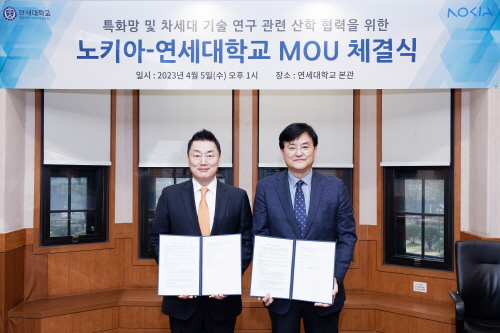연세대학교와 글로벌 기업 노키아(Nokia)는 노키아 제품 및 솔루션을 활용해 앞으로 2년간 공동 연구를 진행한다는 양해각서(MOU)를 4월 5일 체결했다.