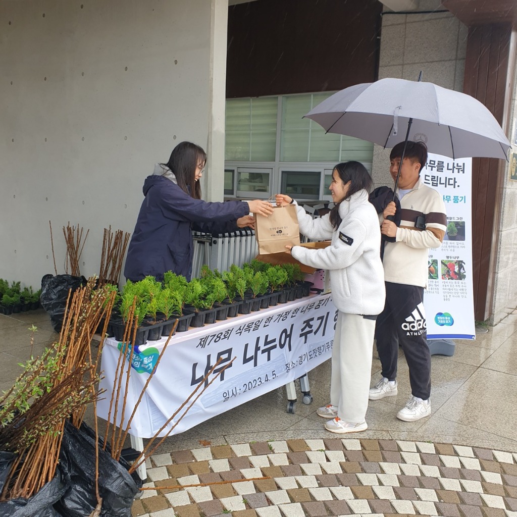 경기도는 제78회 식목일을 맞아 3월 28일과 4월 5일 두 차례에 걸쳐 ‘2023년 경기도 나무 나누어주기 행사’를 개최했다.