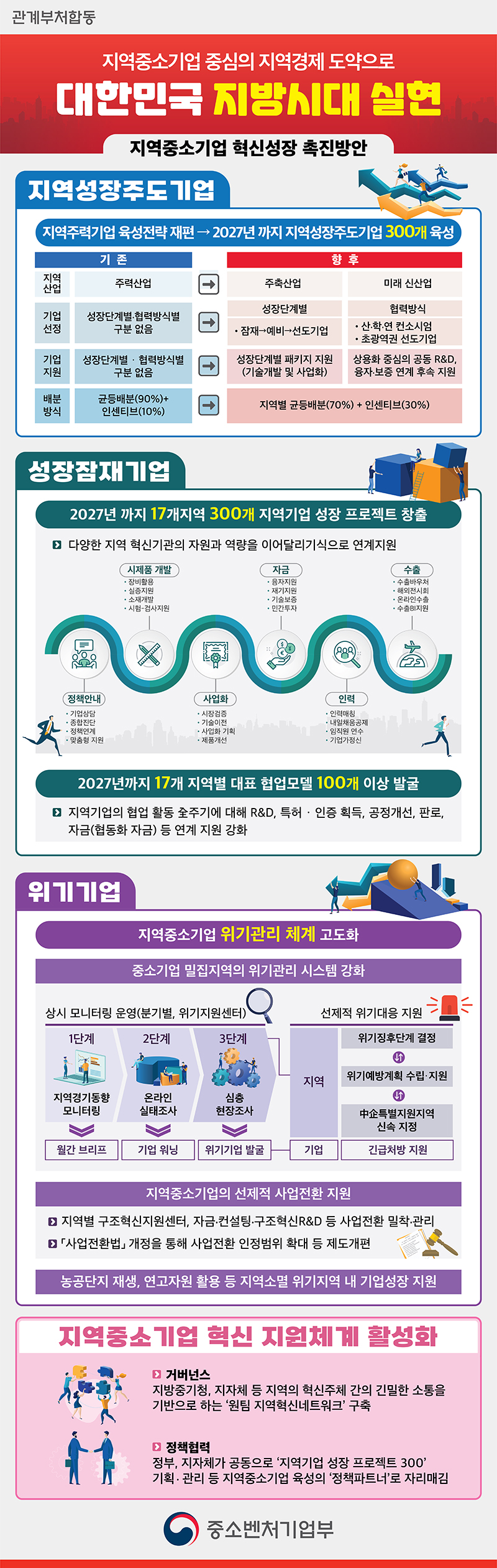 정부와 지방자치단체가 협력해 오는 2027년까지 지역경제의 성장을 주도할 대표 중소기업 300개를 육성한다.